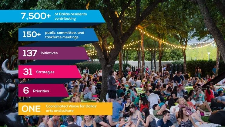 The City of Dallas, through its Office of Cultural Affairs (OCA), launched a year-long process to create a cultural plan—the first since 2002! The city's cultural priorities, determine how Dallas residents experience art, music, and literature in their daily lives.